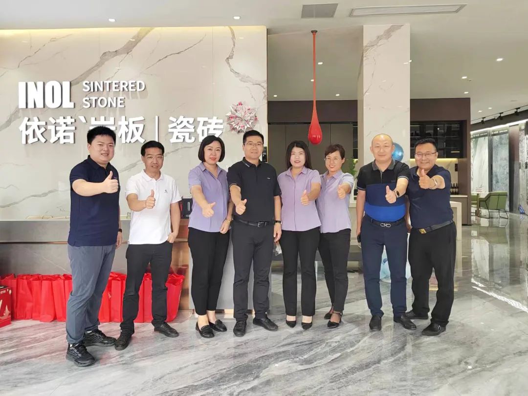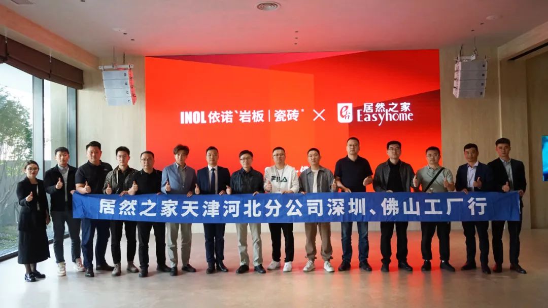 居然之家集團(tuán)副總裁兼天津河北分公司總經(jīng)理 文琳君、天津河北分公司招商副總監(jiān) 李文彬及居然之家相關(guān)領(lǐng)導(dǎo)一行蒞臨依諾巖板瓷磚總部全球營(yíng)銷中心參觀。