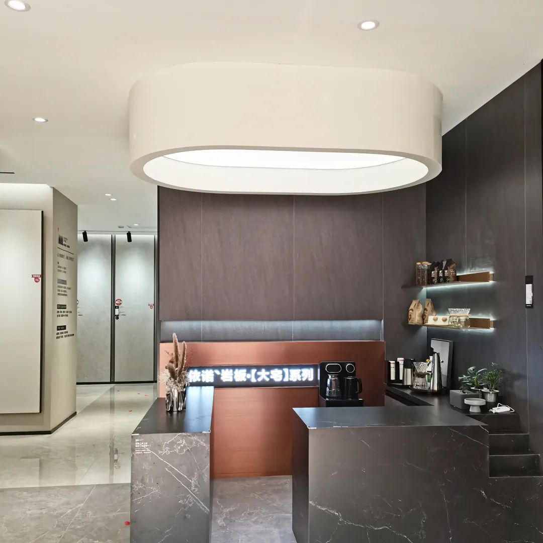 山東省菏澤市600㎡依諾巖板瓷磚店,大空間,為用戶提供色域?qū)拸V、紋理獨(dú)特的巖板和瓷磚產(chǎn)品,協(xié)助用戶打造更具美感與質(zhì)感的家居空間。