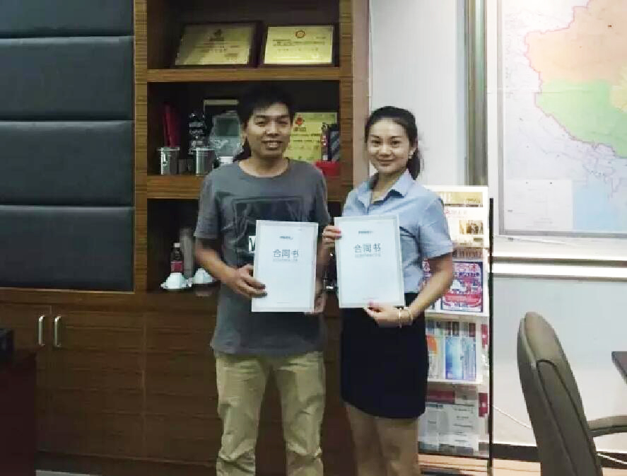 劉超,目前經(jīng)營(yíng)著自己的一家裝飾工程公司,在甕安麒龍摩爾建材城自購(gòu)的800㎡商鋪中,計(jì)劃拿出270㎡的店面經(jīng)營(yíng)瓷磚。他曾經(jīng)營(yíng)過依諾企業(yè)旗下品牌,對(duì)依諾企業(yè)的文化,產(chǎn)品質(zhì)量,產(chǎn)品花色等早已認(rèn)可。6月12日,廠家業(yè)務(wù)經(jīng)理得知消息后立馬趕去,經(jīng)考察及認(rèn)真交流后當(dāng)場(chǎng)簽訂了甕安縣總經(jīng)銷合同。