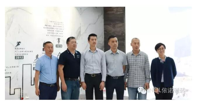 百安居上??偛款I(lǐng)導(dǎo)一行前來依諾磁磚佛山總部參觀交流。據(jù)悉,依諾磁磚與百安居戰(zhàn)略合作已有5年的時(shí)間