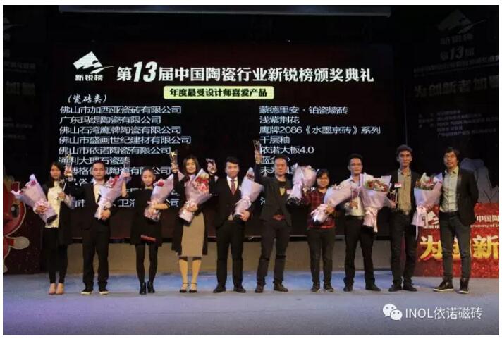 嚴(yán)峻的經(jīng)濟(jì)環(huán)境下,如何才能再市場(chǎng)立足,那么瓷磚代理選擇一個(gè)好品牌很重要!第18屆陶瓷衛(wèi)浴行業(yè)新銳榜頒獎(jiǎng)盛典隆重舉行依諾瓷磚品牌憑借強(qiáng)大的品牌實(shí)力,榮獲“年度影響力品牌「金獎(jiǎng)」”這一重量級(jí)大獎(jiǎng)。