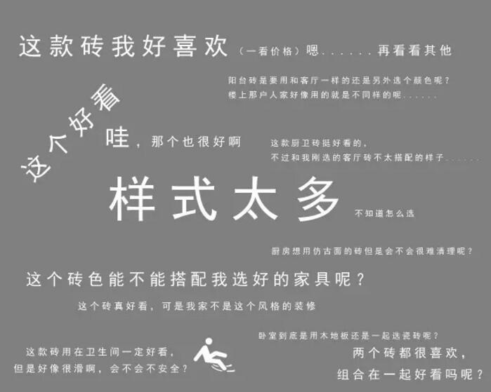 很多裝修的朋友都會(huì)碰到一個(gè)問題,就是瓷磚如何選購(gòu)呢?瓷磚的選購(gòu)是很講究,從家居的風(fēng)格到瓷磚的材質(zhì),再到每塊瓷磚的大小都對(duì)將來鋪貼出的效果和使用有著密不可分的作用。要知道瓷磚一旦鋪上后發(fā)現(xiàn)有問題再想返工,可就成了難題。